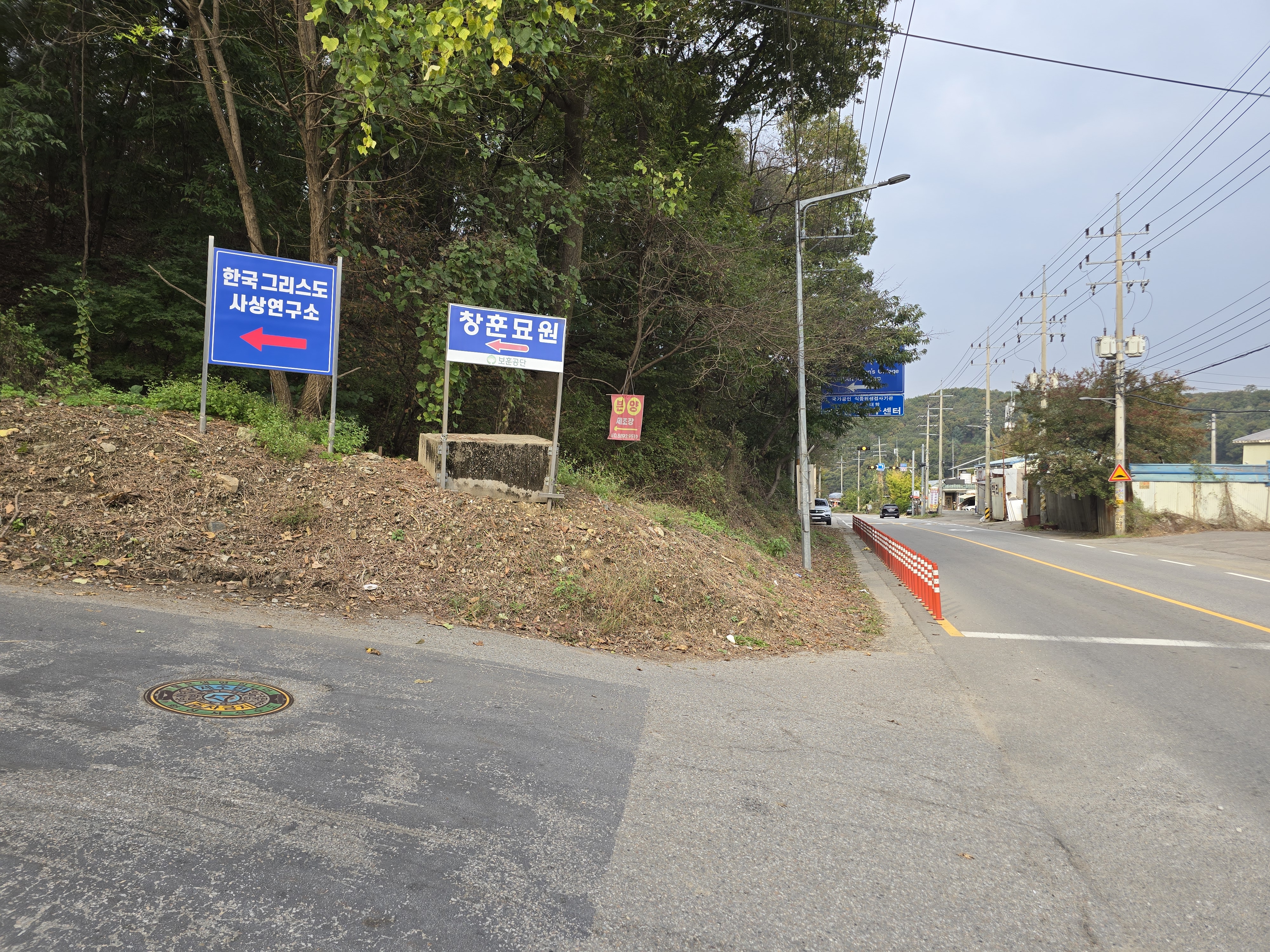 인도가 없이 창훈묘지까지 700여m를 차단봉 옆으로 진행