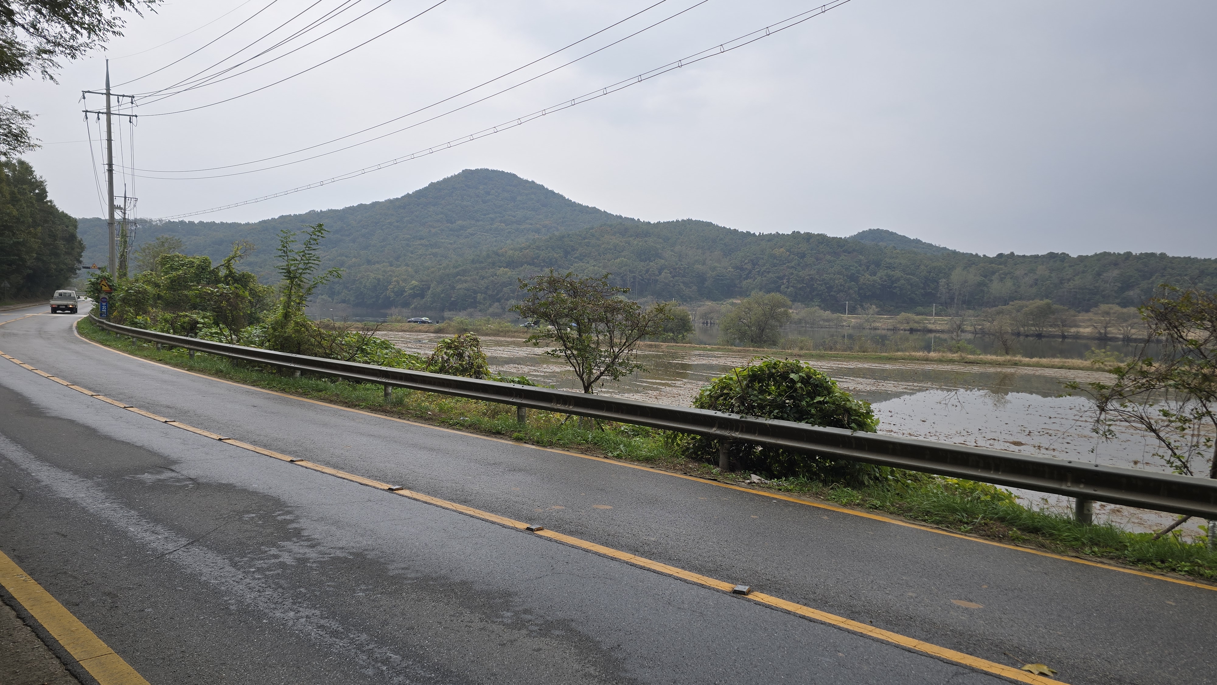 덕우저수지 수변도로 좌측에 인도가 잘 나있어서 진행에는 어려움이 없었다.