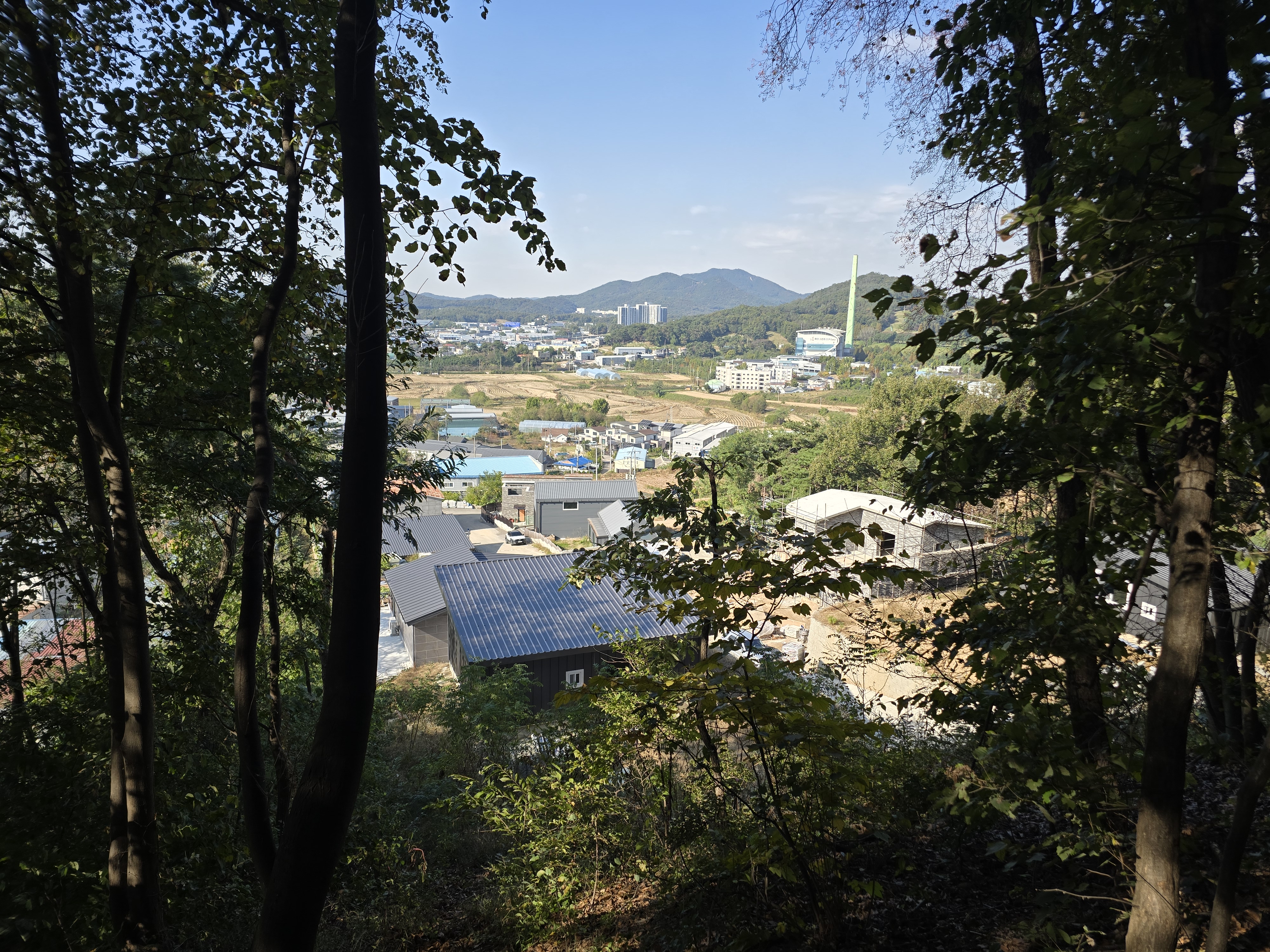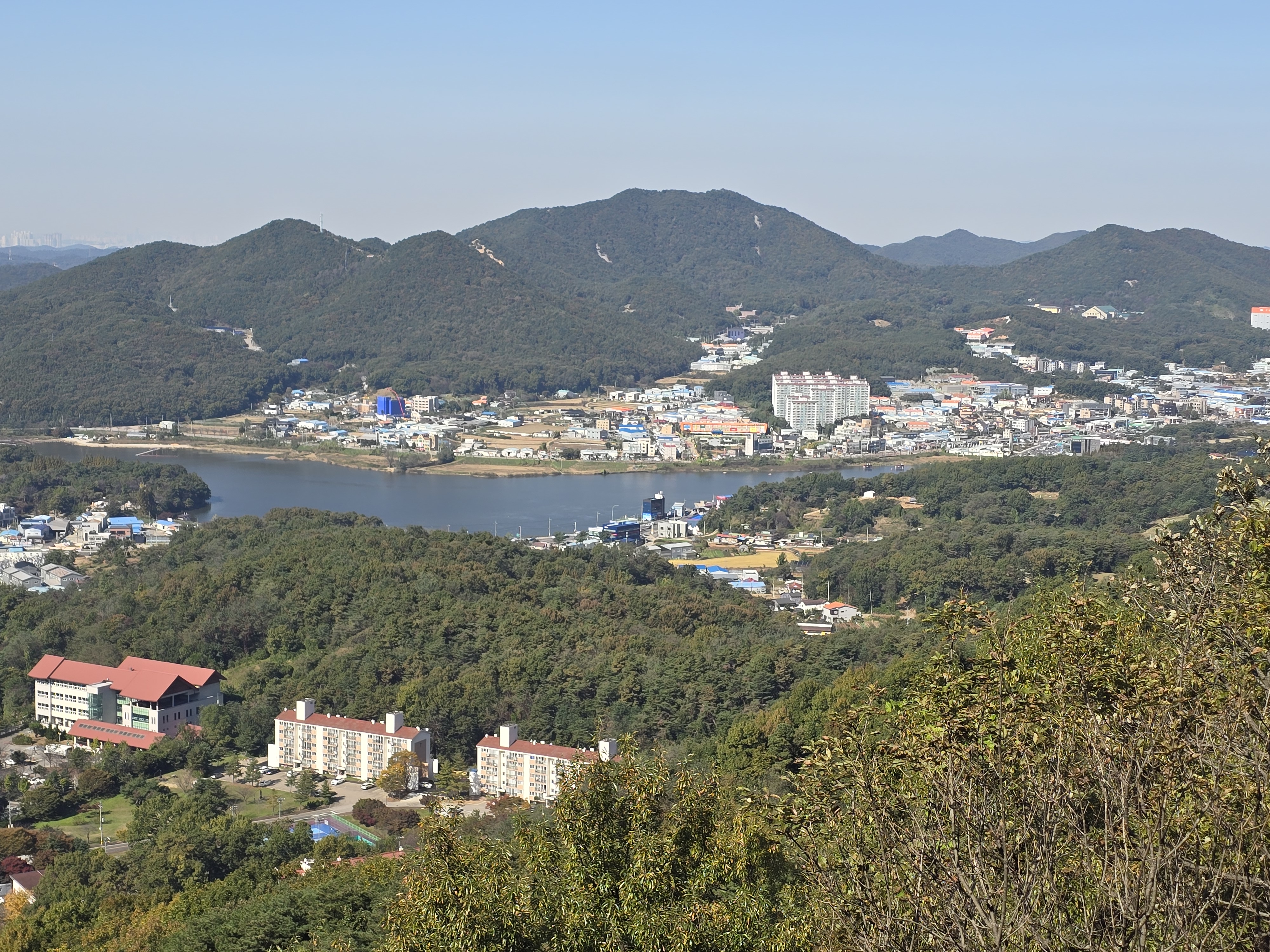 앞에 태행산, 그 뒤로 관악산,모락산,청계산은 나뭇가지에 흐릿,우측 백운산,광교산은 우측에 잘림
