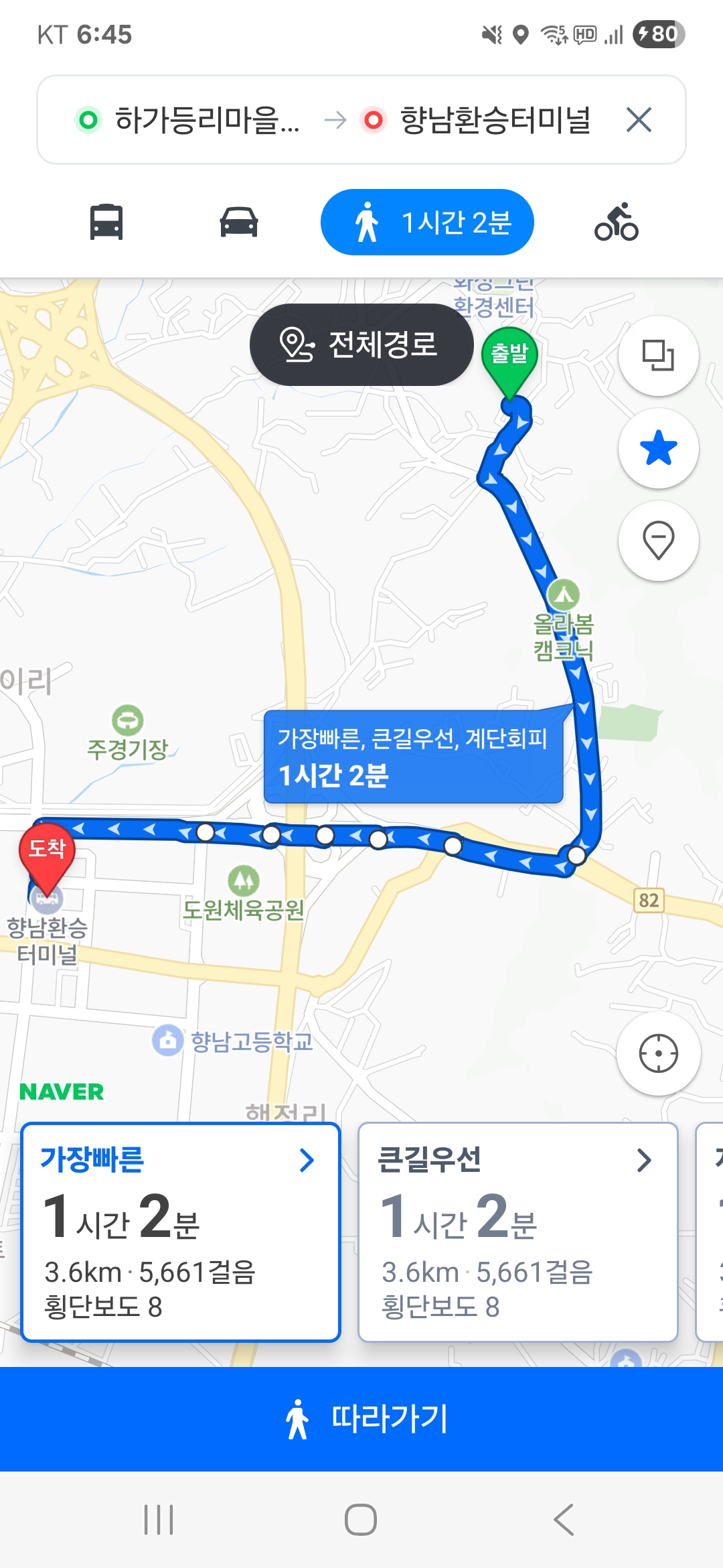 *산행종료후 하가등리정류장~향남버스환승장 (약 4km 도보이동)