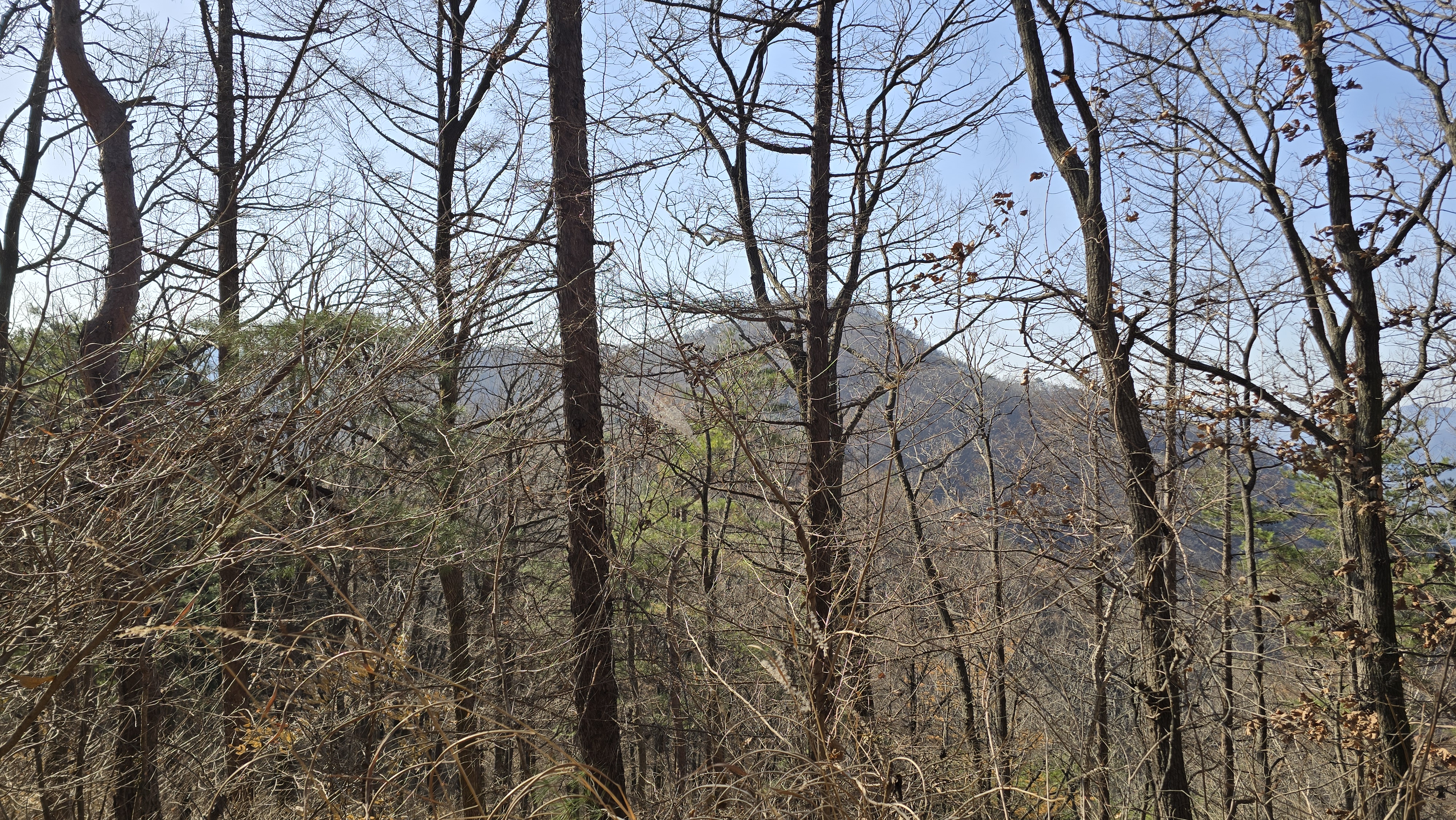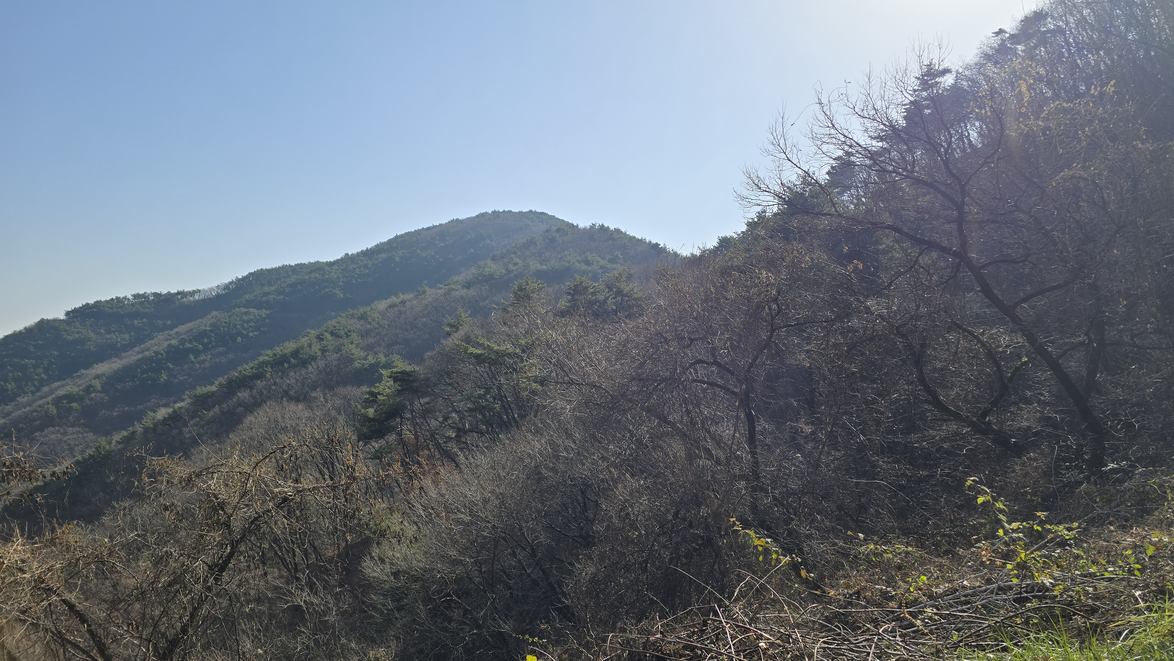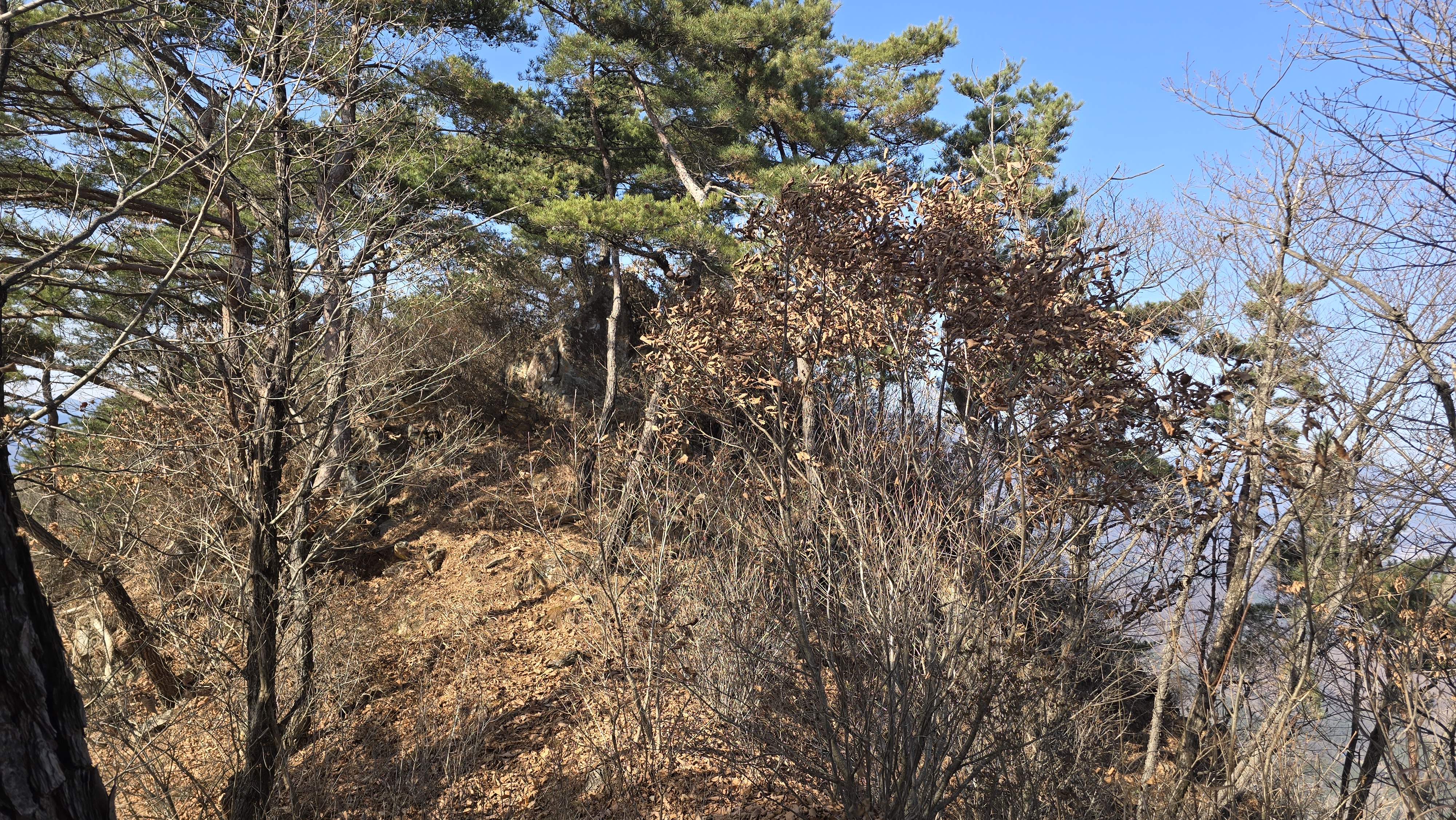 미등정 이지만 뒤돌아본 조봉 등로가 좌측 능선을 타다가 급격하게 하강해서 컨테이너로 나오는거 같다.