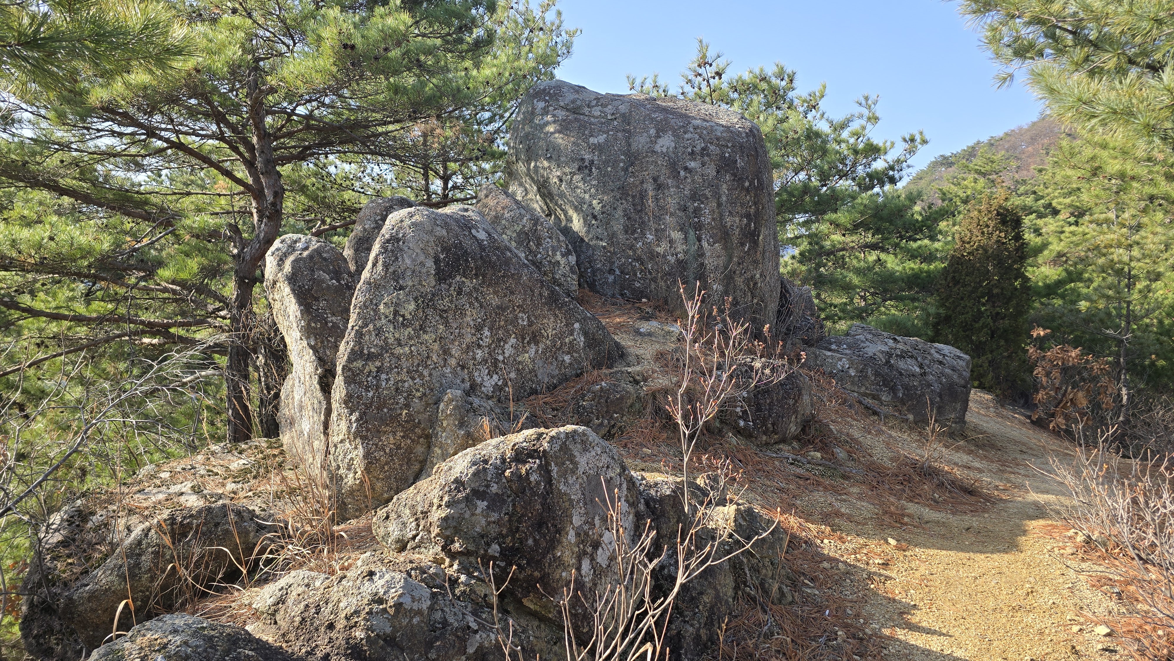 돌탑 두개가 봉우리 갯수르 짐작케 한다.