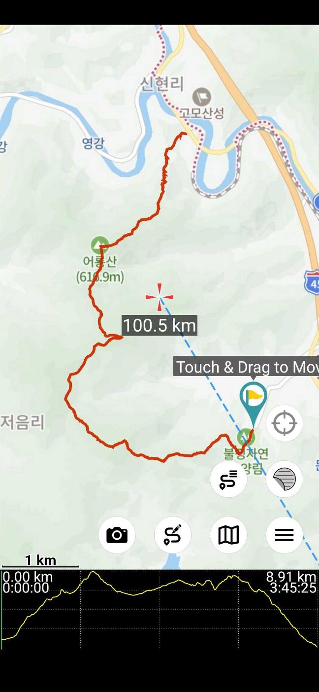 ㅇ코스 : 불정자연휴양림_휴양림등로_안불정마을갈림길_전망대_은점봉_정자쉼터 조봉갈림길_사격장 진입 임도_컨테이너 사이클쉼터_어룡산_진남교반 주차장 (약 9km)