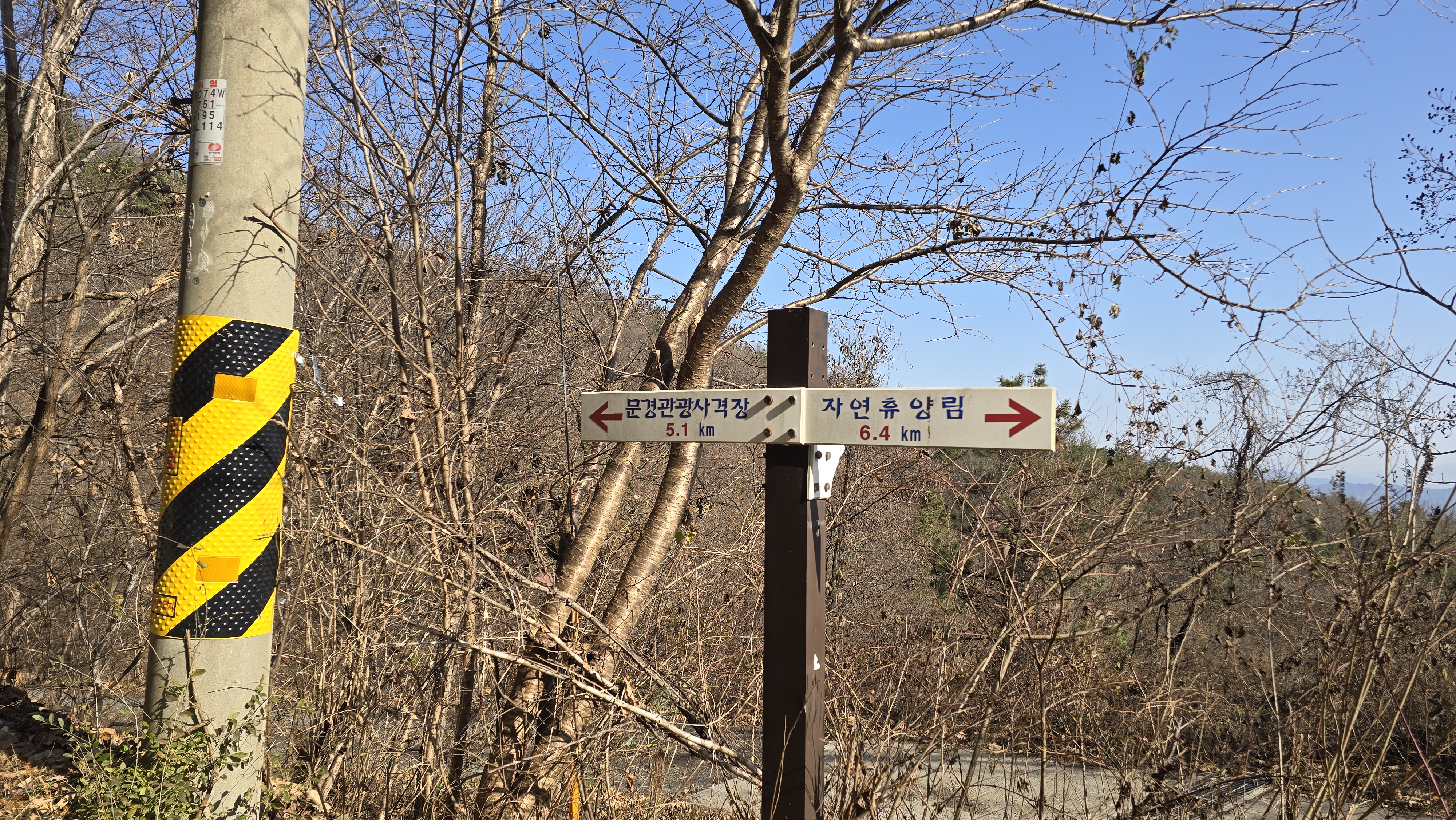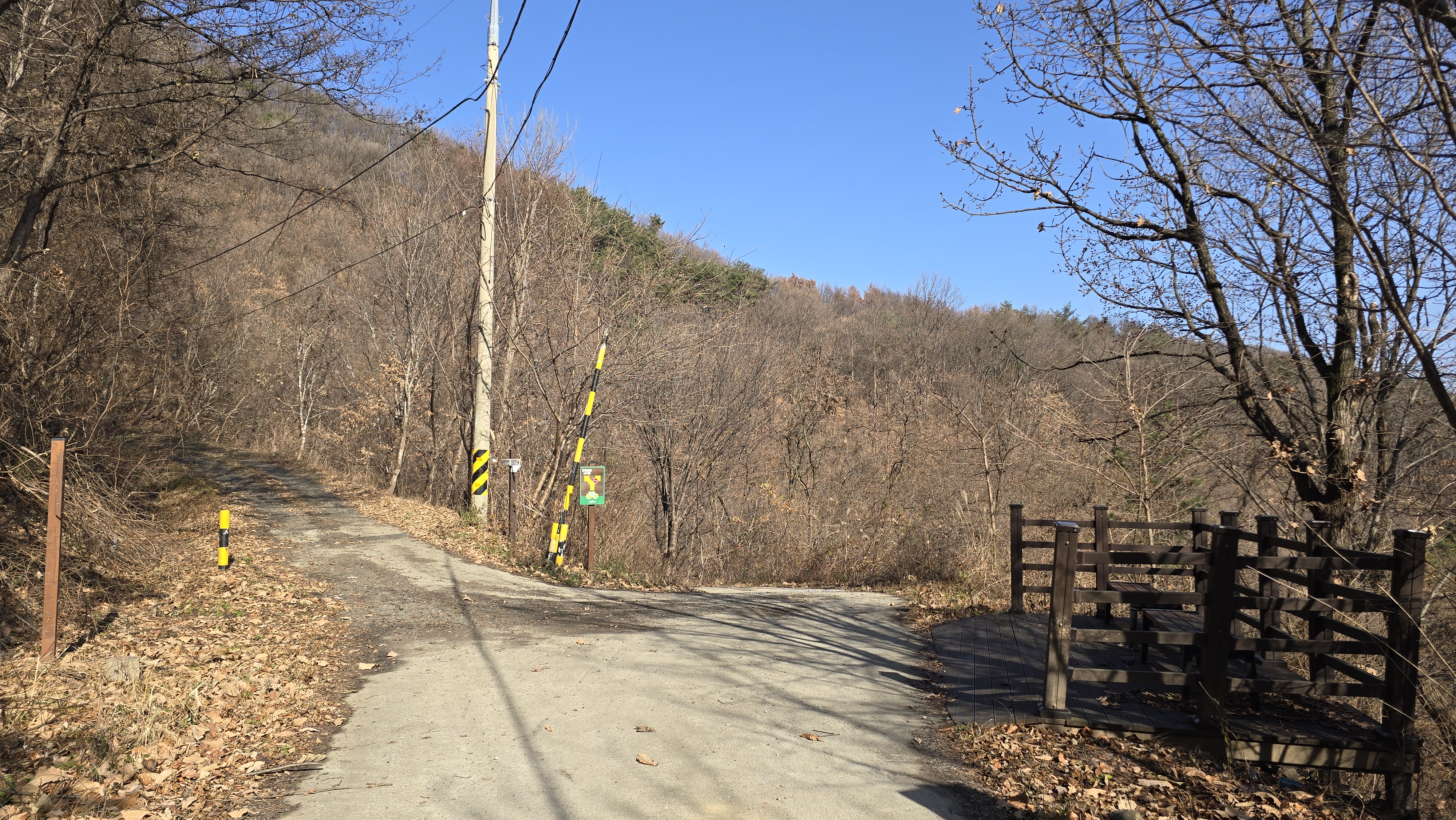 이정표를 조금 아래에 설치했으면 지루한 임도길로 진행하는 수고는 없을 텐데
