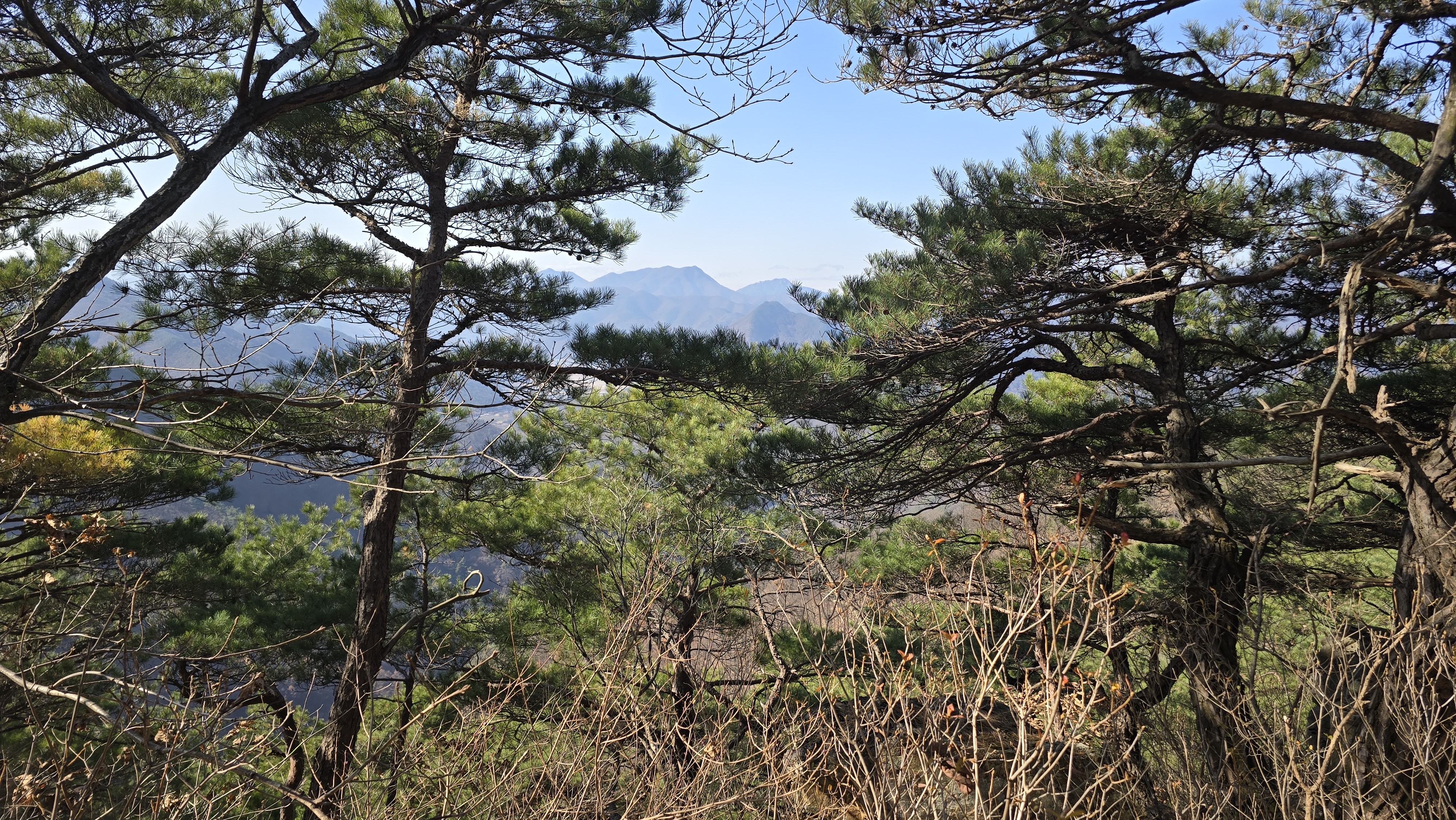 어룡산 진입로에서 올라와 담아본 위사진 줌업 중앙에 뇌정산 좌측에 이만봉, 우측에 백화산