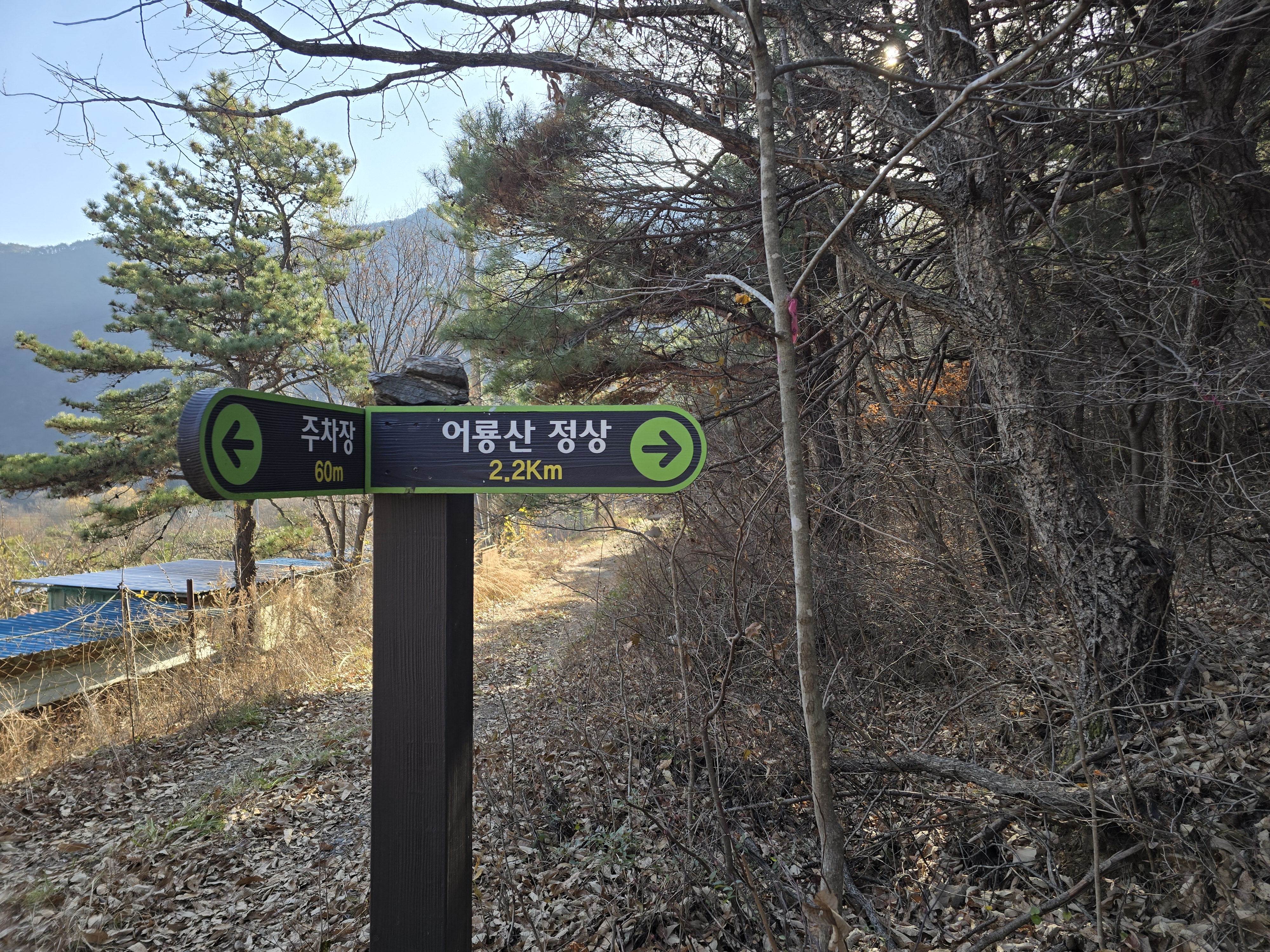 1km가량 임도 진행후 우측 타이어 방벽이 나오면 어룡산 들머리가 지척이다.