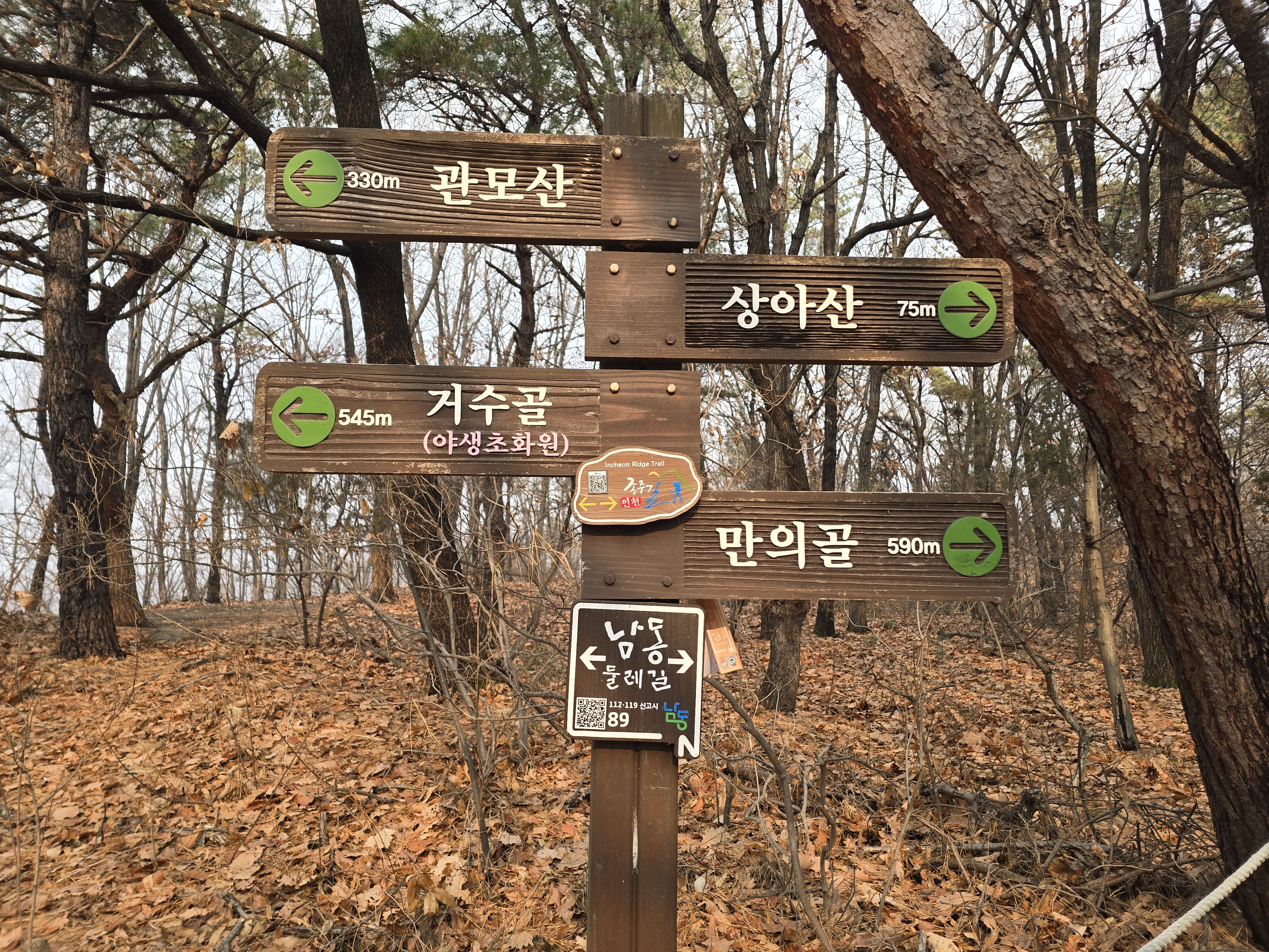 요 지점에서 상아산,관모산 이정표가 없는게 흠이다. 내려선후 우틀하여 대공원동문으로 진행