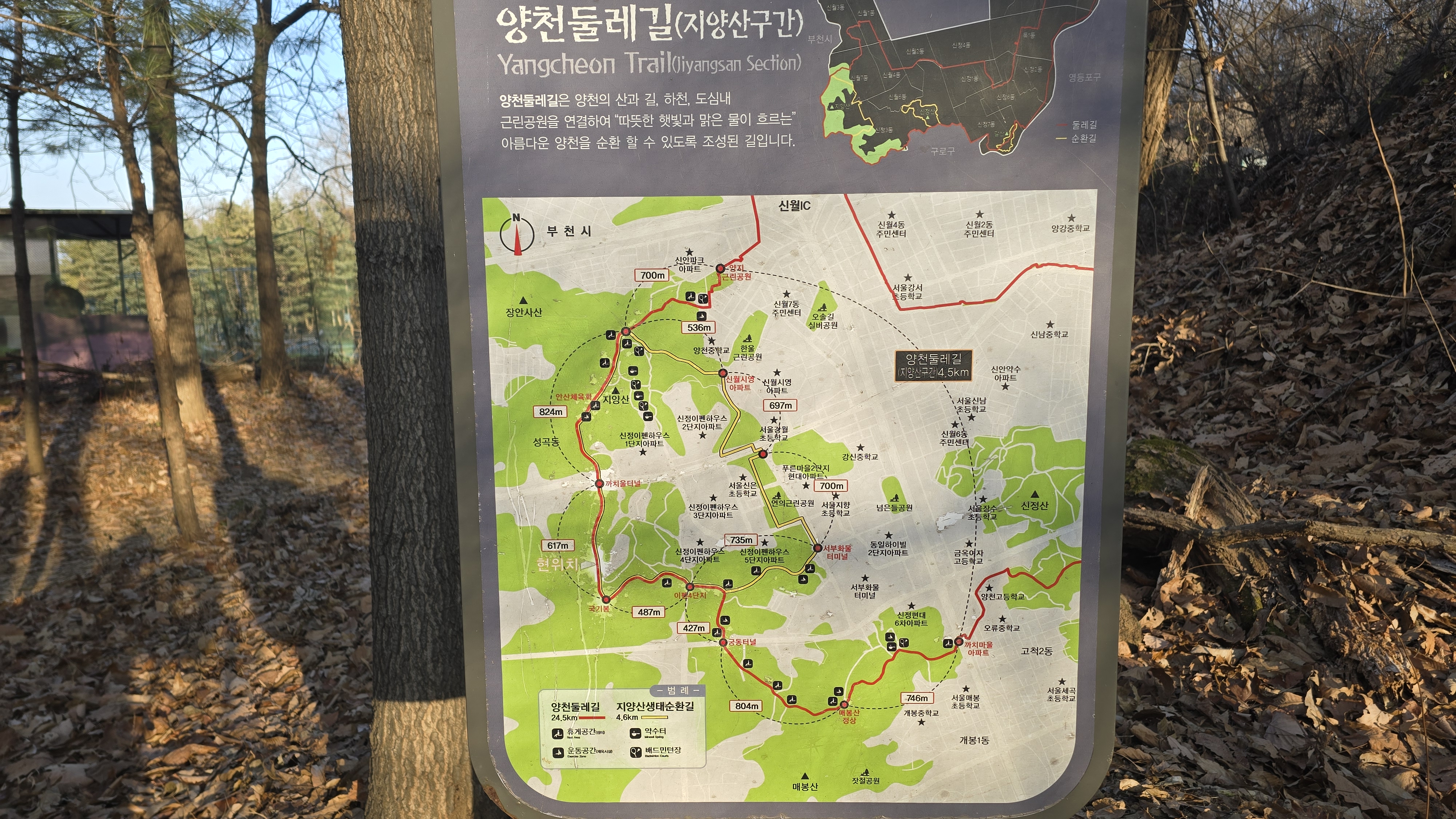 2021.4월경에는 오류역에서 출발하여 개웅산,천왕산,궁산,매봉산 연계산행시 구로올레길 2구간을 타다가 매봉산으로 빠져서 하산 하느라 지양산을 패스했었는데 정상석 개설로 인한 인증샷 땜방도 겸했고 한가지 등로에 흠이 있다면 서울시로 접속되는 구간에 경기도 관련 둘레길 안내가 부실했고 역곡택지개발공사로인한 부천순환둘레길(향토유적숲길) 우회길 안내가 부실한게 흠이었다.