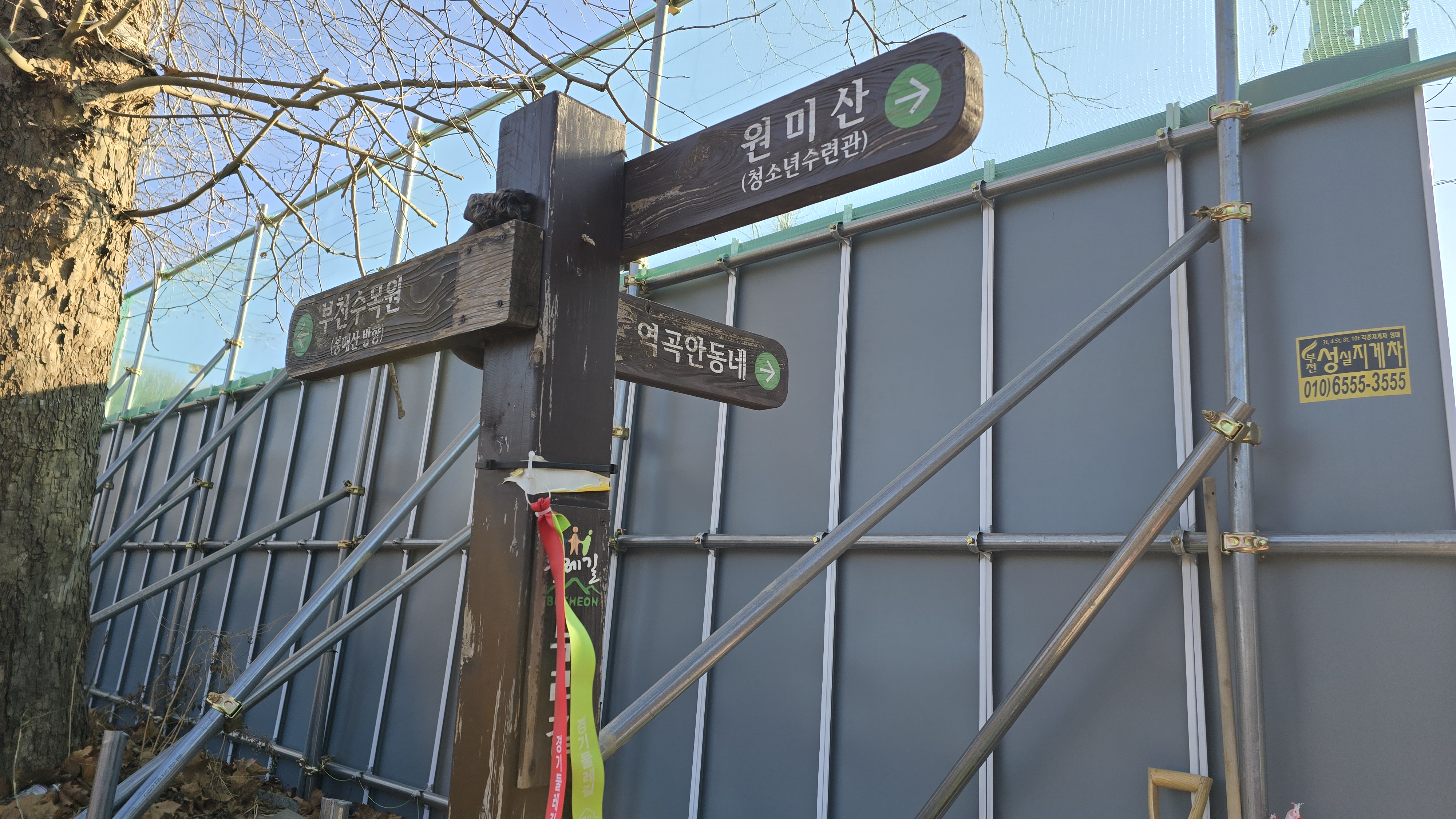 부천수목원방향이 택지공사로 막혀서 팬스 우측으로 진행