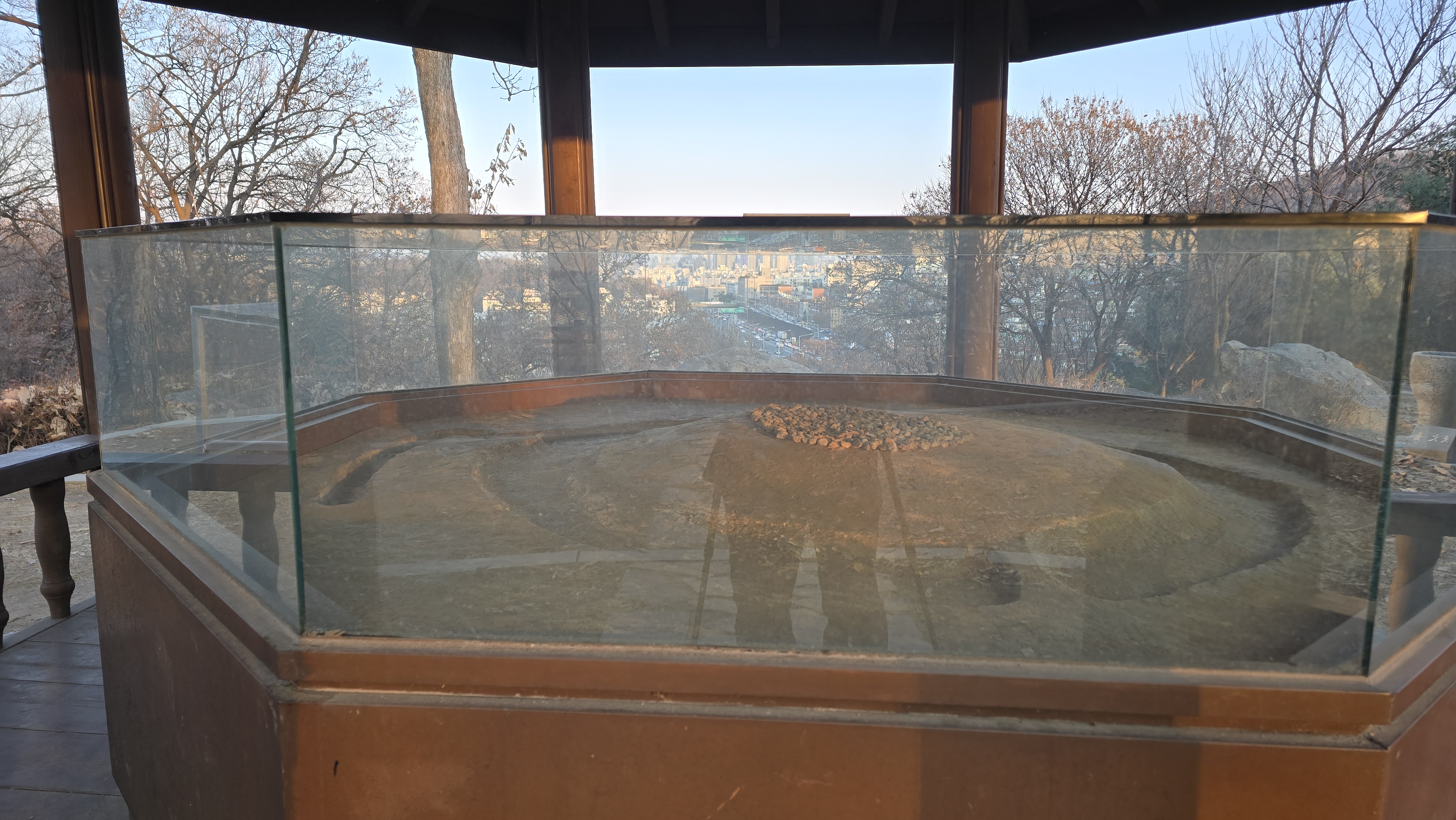 좌측 나무에 가린 중구봉 징메이고개 계양산 우측 구름다리건너 선사유적지