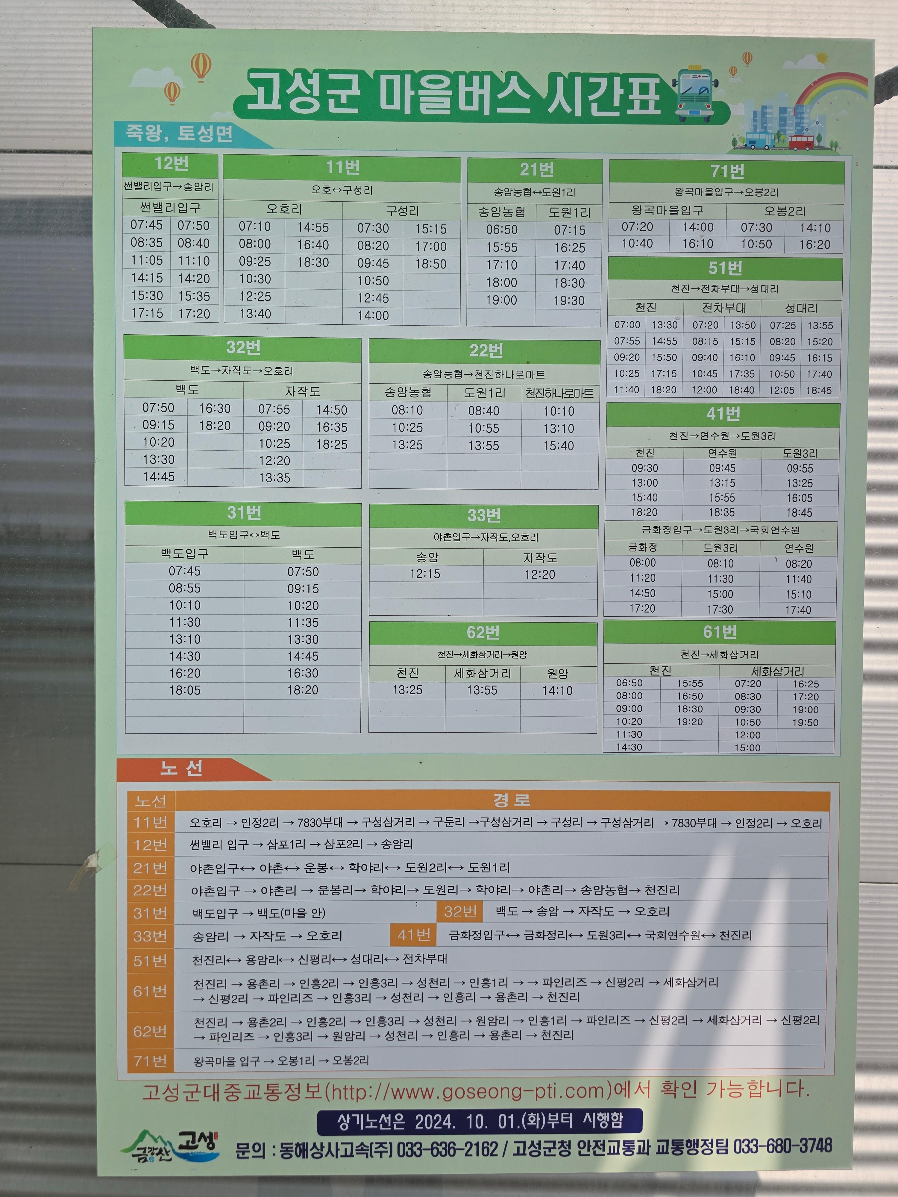 고성군은 해변에 늘어선 해수욕장에서 안마을까지 마을버스가 5~6회 다닌다.