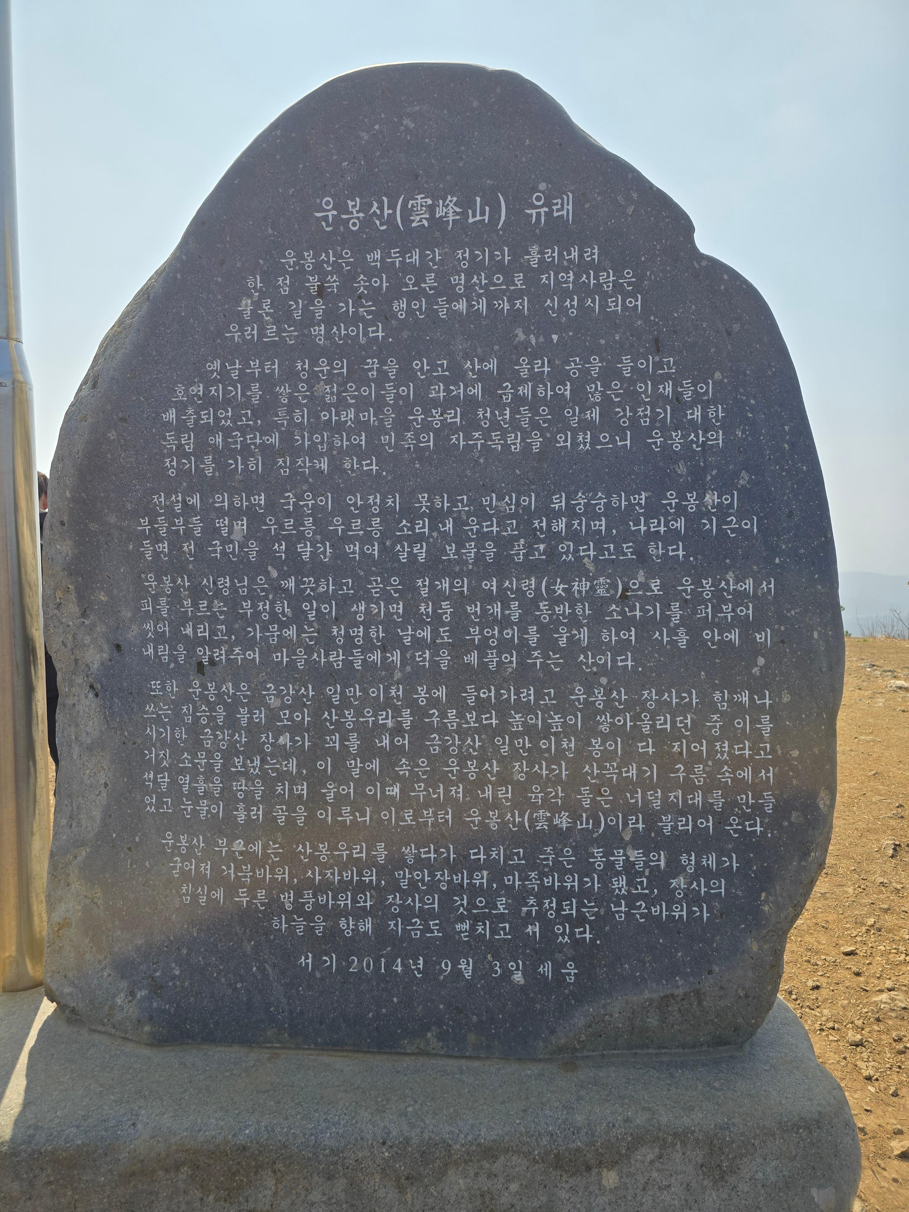 ㅇ코스 : 용천사 입구_말안장바위_운봉산_주상절리_샘터_습지_ 얼굴/거북바위 _운봉리 마을회관_ 숭모공원(약 5km)